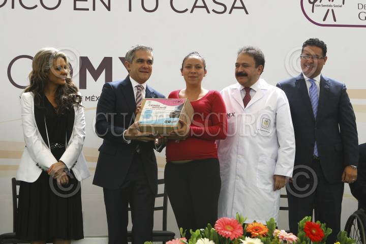 MÉXICO, D.F., 07OCTUBRE2013.- Nora Arias, delegada de Gustavo A. Madero, Miguel Ángel Mancera, Jefe de Gobierno y Armando Ahued, secretario de Salud, durante el arranque del programa "Médico en tu Casa", en la explanada de la delegacional. FOTO: MOISÉS PABLO /CUARTOSCURO.COM