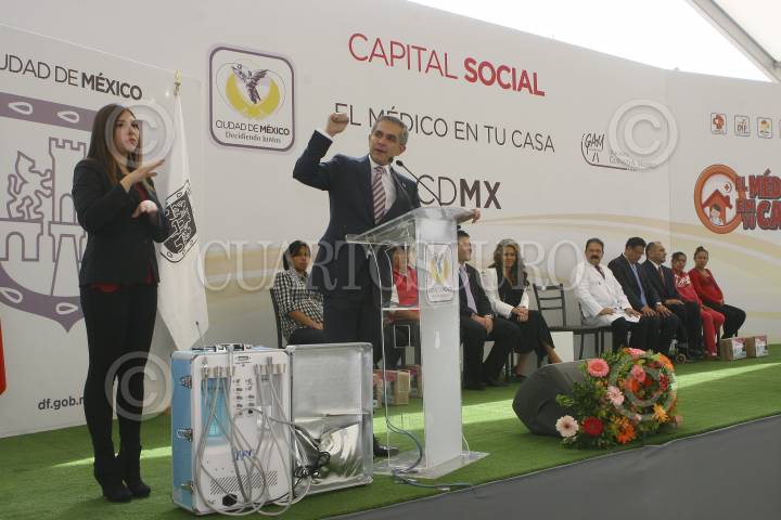 MÉXICO, D.F., 07OCTUBRE2013.- Miguel Ángel Mancera, Jefe de Gobierno, durante el arranque del programa "Médico en tu Casa", en la explanada de la delegacional. FOTO: MOISÉS PABLO /CUARTOSCURO.COM
