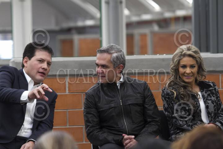MÉXICO, D.F., 18ENERO2016.- Víctor Lobo, delegado de la Gustavo A. Madero, Miguel Ángel Mancera, Jefe de Gobierno, y Nora Arias, diputada local del PRD, durante la inauguración del mercado de Río Blanco, en la delegación Cuauhtémoc. Este centro de abastos fue declarado en contingencia después de que el 15 de abril de 2014, una lluvia atípica derrumbara el techo y se requirió de una inversión de 36 millones de pesos. El mercado cuenta con celdas solares, lo que permitirá un ahorro de 40% de energía eléctrica. FOTO: MOISÉS PABLO /CUARTOSCURO.COM