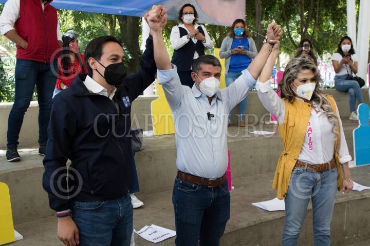 Andrés Atayde, dirigente del PAN CDMX, y Nora Arias, dirigente del PRD, acompañaron a Mauricio Tabe quien arrancó su campaña por la alcaldía Miguel Hidalgo.