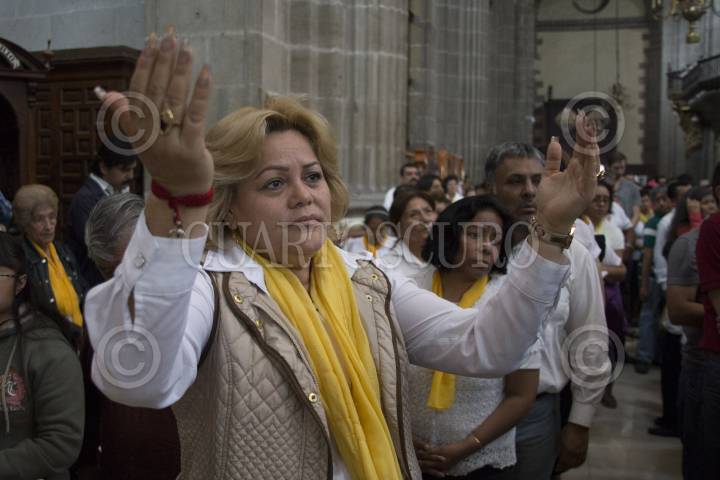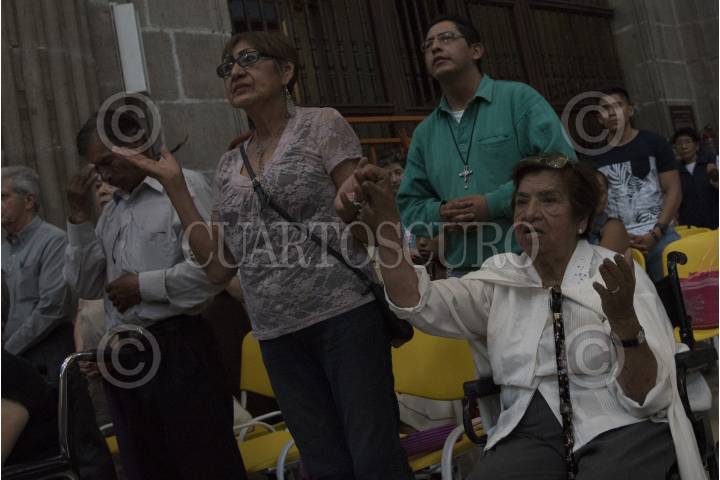 CIUDAD DE MÉXICO, 30ABRIL2017.- Católicos rezan el padre nuestro en la misa del medio día que ofiició el Arzobispo Norberto Rivera. FOTO: TERCERO DÍAZ /CUARTOSCURO.COM
