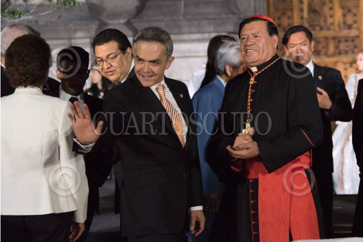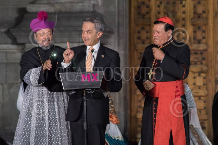 CIUDAD DE MÉXICO, 21JUNIO2017.- Miguel Ángel Mancera Espinosa, jefe de gobierno, y Norberto Rivera, cardenal de la iglesía católica, encabezaron el encendido de la Catedral metropólitana, como parte de una campaña de embellecimiento a la ciudad. FOTO: TERCERO DÍAZ /CUARTOSCURO.COM