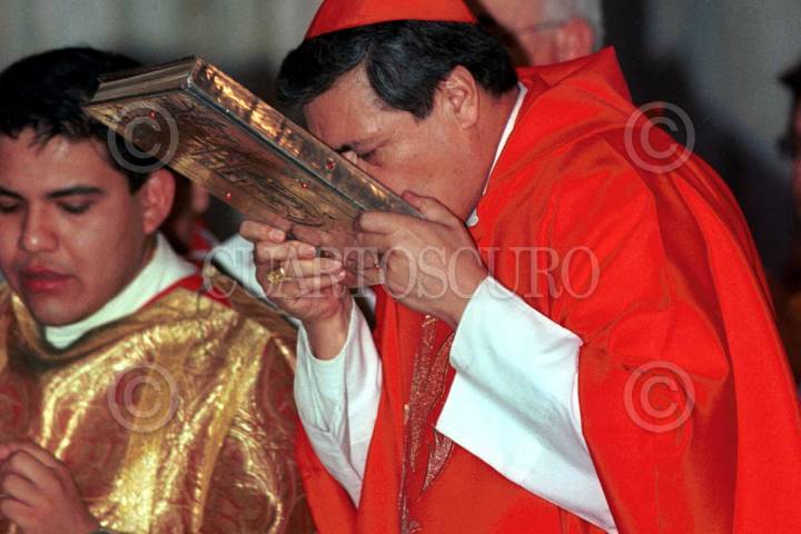 Norberto Rivera Carrera, Cardenal Primado de México, besa la Santa Biblia, durante su tradicional homilia en la Catedral Metropolitana. FOTO:Oswaldo Ramírez/CUARTOSCURO.COM.