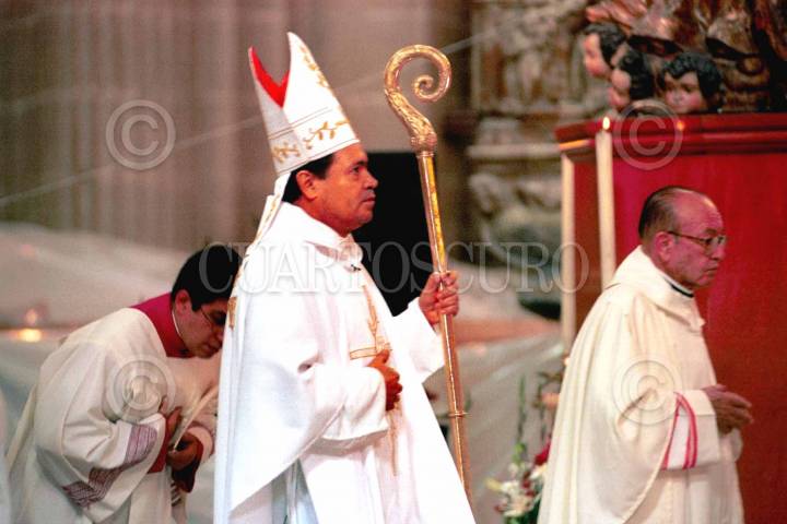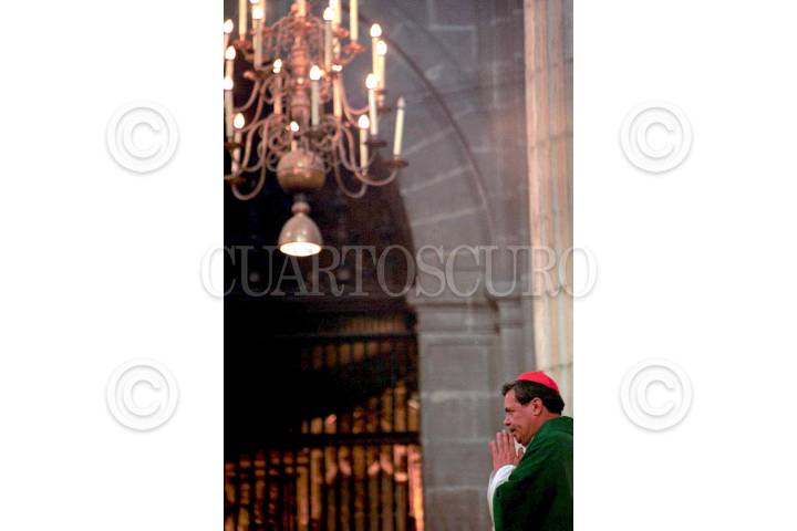 Norberto Rivera Carrera, Arzobispo primado de México, al termino de su tradicional misa dominical en la Catedral Metropolitana hablo sobre la Ley Indigena. FOTO:Oswaldo Ramírez/CUARTOSCURO.COM