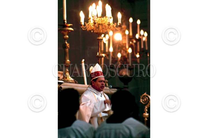 El arzobispo de México, Norberto Rivera Carrera, demandó hoy que bajen los índices de pobreza en México para disminuir la ola de criminalidad que azota al país y a esta capital. Rivera Carrera dijo que la pobreza eleva los índices de criminalidad, y muestra de ello es el asesinato de una familia en Tlalpan, cometido "con tanta saña y odio". FOTO: Eunice Adorno/CUARTOSCURO.COM
