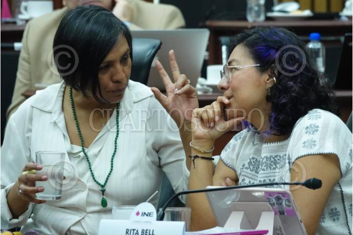 CIUDAD DE MÉXICO, 22MAYO2025.- Las consejeras electorales, Norma Irene de la Cruz y Rita Bell López Vences, conversaron durante la Sesión Extraordinaria en el Instituto Nacional Electoral. FOTO: GRACIELA LÓPEZ/CUARTOSCURO.COM