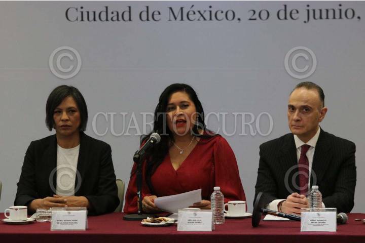 CIUDAD DE MÉXICO, 22MAYO2025.- Guadalupe Taddei Zavala, consejera presidenta, acompañada de Norma Irene de la Cruz Magaña y Rita Bell López Vences, consejeras electorales, durante una conferencia de prensa en el Instituto Nacional Electoral. FOTO: GRACIELA LÓPEZ/CUARTOSCURO.COM