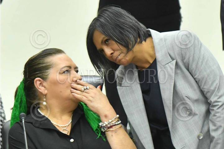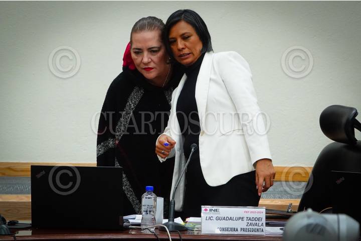 CIUDAD DE MÉXICO, 15JULIO2025.- Guadalupe Taddei Zavala, consejera presidenta, y Norma Irene de la Cruz Magaña, consejera electoral, conversaron durante la Sesión Extraordinaria del Consejo General del Instituto Nacional Electoral. FOTO: GRACIELA LÓPEZ/CUARTOSCURO.COM