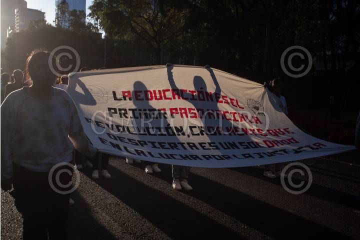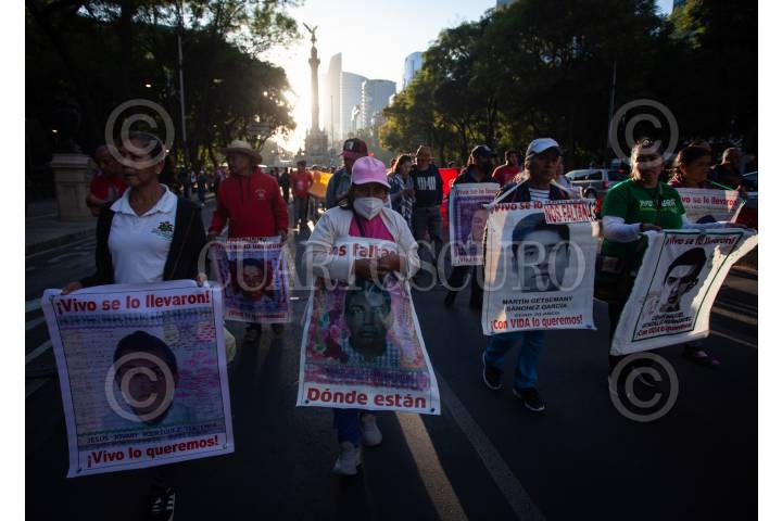 CIUDAD DE MÉXICO, 26NOVIEMBRE2024.- Padres y madres de los 43 estudiantes de la normal Ayotzinapa desaparecidos en 2014 así como estudiantes normalistas y activistas protestaron como cada 26 de mes a 10 años y 2 meses de la desaparición para exigir claridad en el caso. FOTO: ANDREA MURCIA /CUARTOSCURO.COM