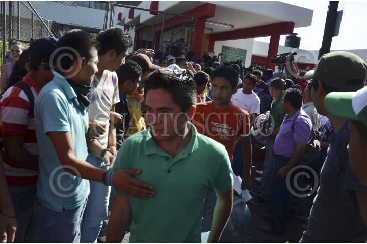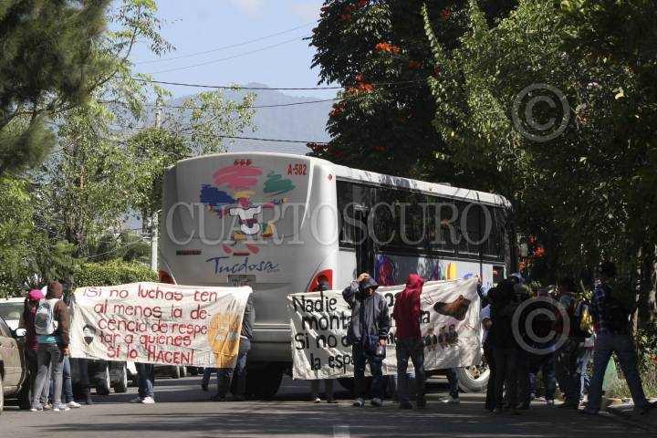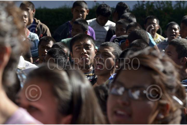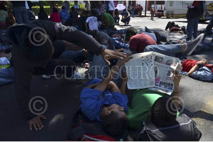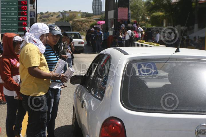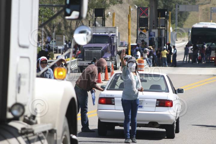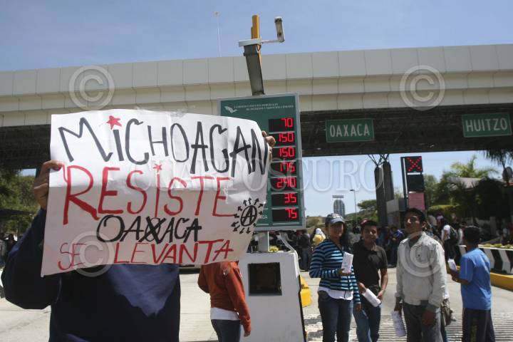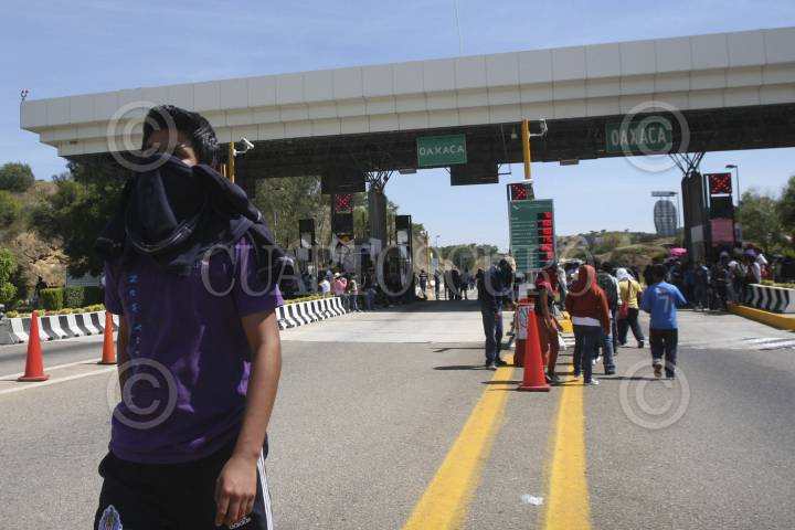 SAN BARTOLO COYOTEPEC, OAXACA, 17OCTUBRE2012.- Integrantes la Coordinadora de Estudiantes Normalistas del Estado de Oaxaca (Ceneo), tomaron la caseta de cuota de San Pablo Huitzo ubicada en el kilómetro 217+010 de la super carretera Oaxaca - México, en solidaridad con los estudiantes de los Normales de Michoacán que fueron detenidos. En dicho sitio 400 normalistas pidieron cooperación a los automovilistas y transportistas que circulaban por el lugar. FOTO: ARTURO PÉREZ ALFONSO /CUARTOSCURO.COM