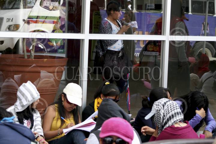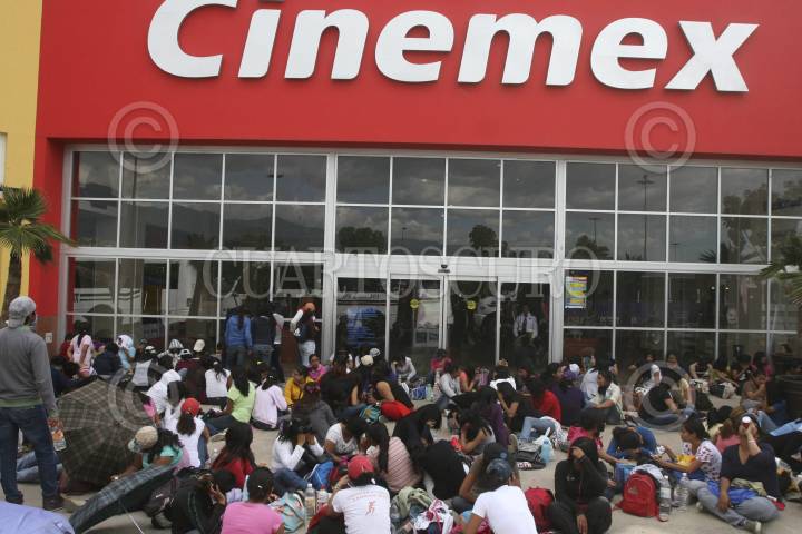 OAXACA, OAXACA, 22OCTUBRE2012.- Estudiantes normalistas pertenecientes a la Coordinadora de Estudiantes Normalistas del Estado de Oaxaca (Ceneo, )realizaron la toma de Plaza Bella, centro comercial que aglutina a más de una docena de negocios locales y nacionales. Además realizaron visita de "cortesía" a Radiorama y al Grupo Radio México, donde les otorgaron 10 minutos para transmitir su posicionamiento. Al interior de la plaza comercial quedo encerrada una jovencita que no logró salir antes del cierre. FOTO: ARTURO PÉREZ ALFONSO /CUARTOSCURO.COM
