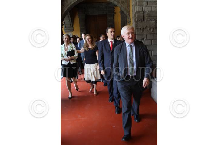 MÉXICO, D.F., 21MAYO2010.- Paloma Porraz, directora del Antiguo Colegio de San Ildenfonso, Judith McGregor, embajador del Reino Unido, Spencer de Grey y Marcelo Ebrard Casaubón, Jefe de Gobierno, recorrieron la exposición arquitectónico Norman Foster + Partners, una cronología de 227 proyectos que el despacho ha realizado: planos, dibujos, maquetas, fotografía de gran formato y vídeo que permanecerán hasta el domingo 25 de Julio en el inmueble ubicado en la calle de Justo Sierra 16, Centro Histórico. FOTO: MOISÉS PABLO/CUARTOSCURO.COM