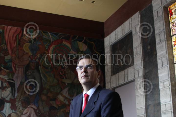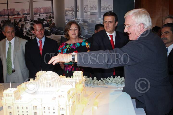MÉXICO, D.F., 21MAYO2010.- Marcelo Ebrard Casaubón, Jefe de Gobierno, recorrió la exposición arquitectónica Norman Foster + Partners, en el Antiguo Colegio de San Ildenfonso. FOTO: MOISÉS PABLO/CUARTOSCURO.COM