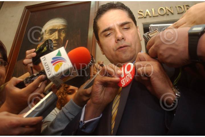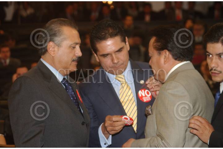 MÉXICO, D.F., 06MAYO2010.- El vicecoordinador de los senadores del PRD, SIlvano Aureoles Conejo, hizo entrega a diversos legisladores un botón con la leyenda NO SB1070 como parte de las acciones del Senado de la República de protesta simbólica contra la ley antimigrante aprobada en el estado norteamericano de Arizona. FOTO: CUARTOSCURO.COM