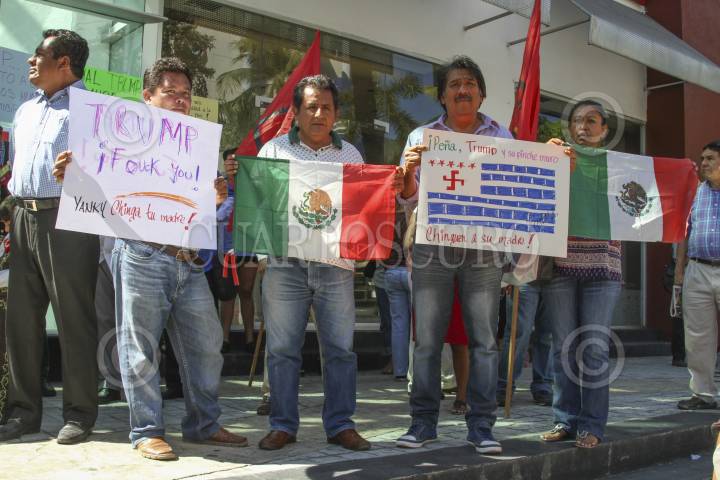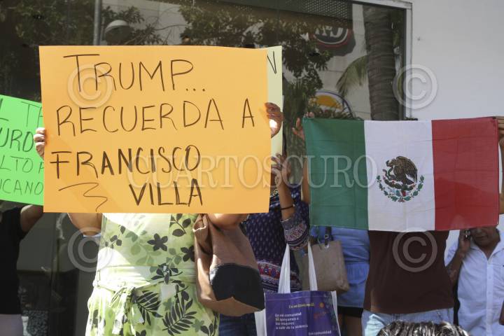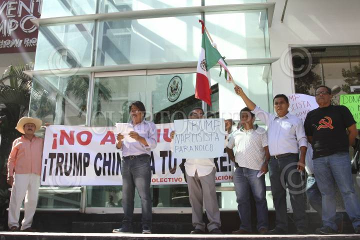 ACAPULCO, GUERRERO, 20ENERO2017.- Miembros de diversas organizaciones sociales se reunieron para manifestar el rechazo al nuevo presidente de los Estados Unidos de América, Donald Trump. La protesta se llevó acabo a las afueras del Consulado norteamericano. FOTO: BERNANDINO HERNÁNDEZ /CUARTOSCURO.COM