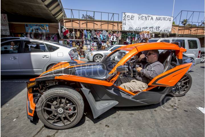TIJUANA BAJA CALIFORNIA, 01JUNIO2018.- A pesar de la larga espera para cruzar la frontera, un hombre de nacionalidad estadounidense disfruta del clima cálido disfrutando de una nieve a bordo de una motocicleta. FOTO: OMAR MARTÍNEZ /CUARTOSCURO.COM
