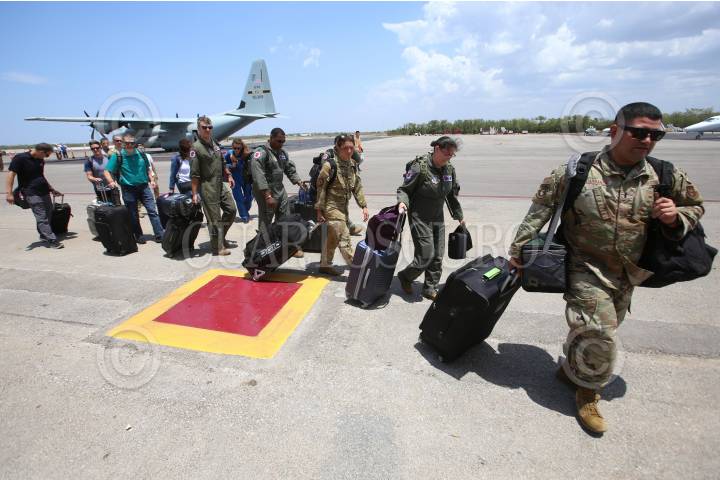 Elelemtos de la fuerza aérea norteamericana. Descienden de la aeronave.