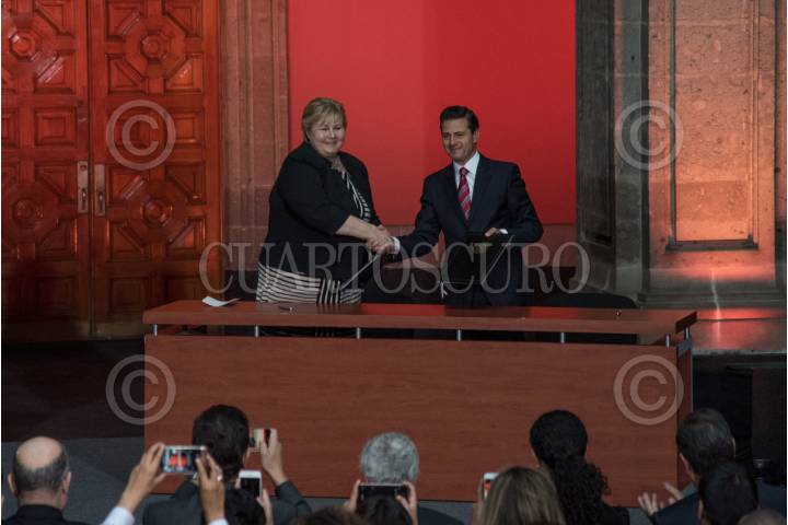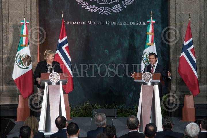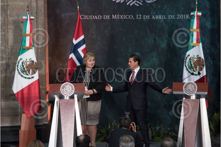 CIUDAD DE MÉXICO, 12ABRIL2018.- El presidente Enrique Peña Nieto, y Erna Solberg, Primera Ministra de Noruega, llevaron a cabo la firma del documento Declaración Conjunta entre México y Noruega, celebrado en Palacio Nacional. FOTO: MARIO JASSO /CUARTOSCURO.COM
