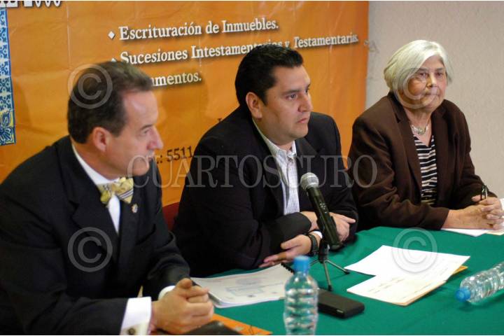 MEXICO, D.F 03MAYO2005.- El presidente de la Comisión de Notariado, Andrés Lozano Lozano, acompañado por la directora general de Regularización Territorial, Carlota Botey y el presidente del Comité del Comité del Colegio de Notarios, Alfonso Zermeño Infante, dio a conocer que más de 30 mil personas han acudido a las jornadas notariales. FOTO: CUARTOSCURO.COM