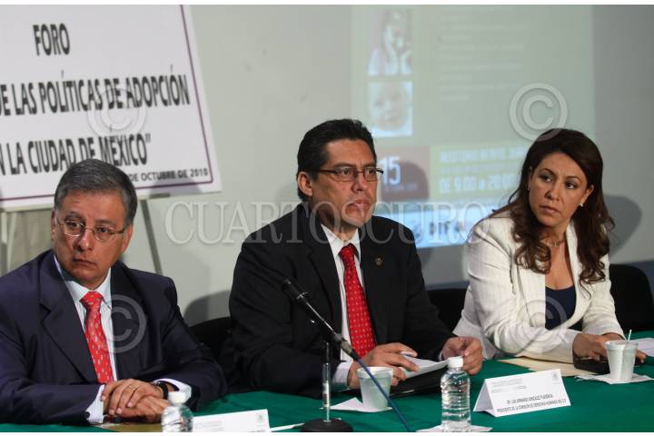 MÉXICO, D.F., 15OCTUBRE2010.- Erick Salvador Pulliam, presidente del Colegio de Notarios del Distrito Federal; Luis Armando González Placencia, presidente de la Comisión de Derechos Humanos del Distrito Federal y la diputada Rocia Barrera Badillo, presidenta de la comisión de notariado de la Asamblea Legislativa durante el foro “Análisis de Políticas de Adopción en la Ciudad de México” que se realizo en la Asamblea Legislativa del Distrito Federal. FOTO: RODOLFO ANGULO/CUARTOSCURO.COM