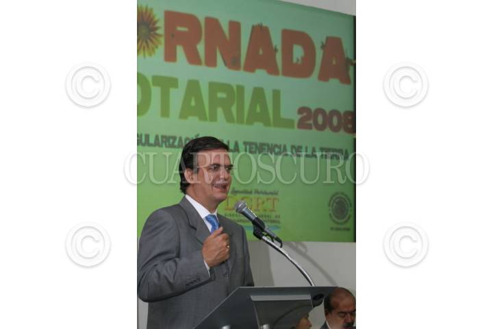 MÉXICO D.F. 12MAYO2008.-Marcelo Ebrad Casaubon, jefe del gobierno capitalino inauguro la nueva temporada de las Jornadas Notariales 2008 en el DF.FOTO: GUILLERMO PEREA/CUARTOSCURO.COM
