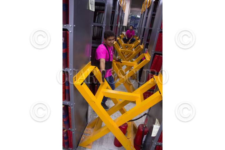 CIUDAD DE MÉXICO, 06OCTUBRE2018.- A marchas forzadas se encuentra trabajando el Archivo General de Notarias. Jovenes del Injuve realizan los trabajos de acomodo de los libros. El nuevo archivo se encuentra en la calle Candelaria de los Patos, frente a la Cámara de Diputados. FOTO: VICTORIA VALTIERRA /CUARTOSCURO.COM