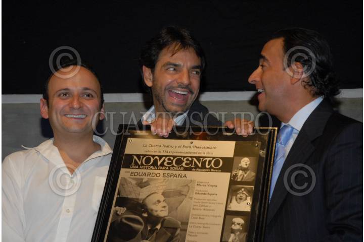 MEXICO, D.F., 23JUNIO2008.-El Actor Eduardo España Protagonista de la Obra "Novecento" en la función de la develación de las 115 representaciones, lo acompañaron los Actores Adal Ramones y Eugenio Derbez. FOTO: FELIPE CASTELLANOS/CUARTOSCURO.COM