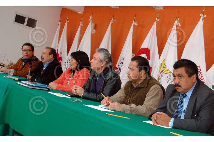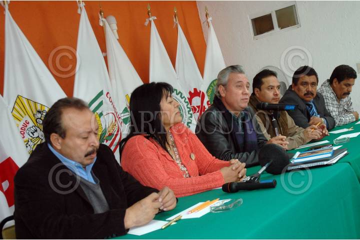 MÉXICO D.F., 11ENERO2008.- Margarito Montes Parra de la UGOCP, Guadalupe Martínez Cruz de la CONSUCC, Raul Pérez Bedolla de la ALCANO, Humberto Serrano Novelo de la CAM y Euam Martínez de la UGOCM durante una conferencia de prensa de los integrantes del Congreso Agrario Permanente. FOTO: RODOLFO ANGULO/CUARTOSCURO.COM