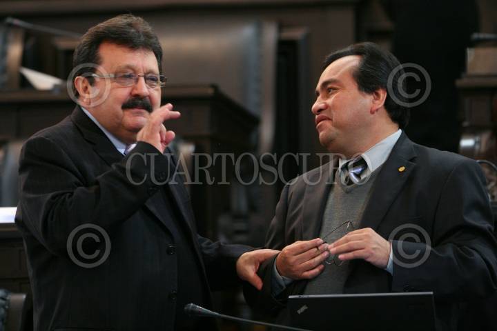 MÉXICO, D.F., 18FEBRERO2010.- Los senadores Renán Cleominio Zoreda Novelo, platicó con Alfredo Rodríguez y Pacheco, en la sesión en la Cámara Alta. FOTO: MOISÉS PABLO/CUARTOSCURO.COM