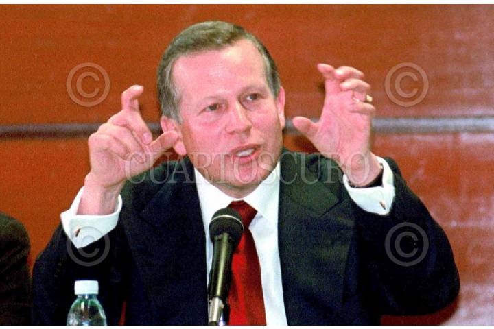 Manuel Angel Nuñez Soto, gobernador del Estado de Hidalgo, hace declaraciones sobre el desplegado en contra del presidente Fox que supuestamente firmaron el, y otros gobernadores del PRI. FOTO: Victoria Valtierra/CUARTOSCURO.COM