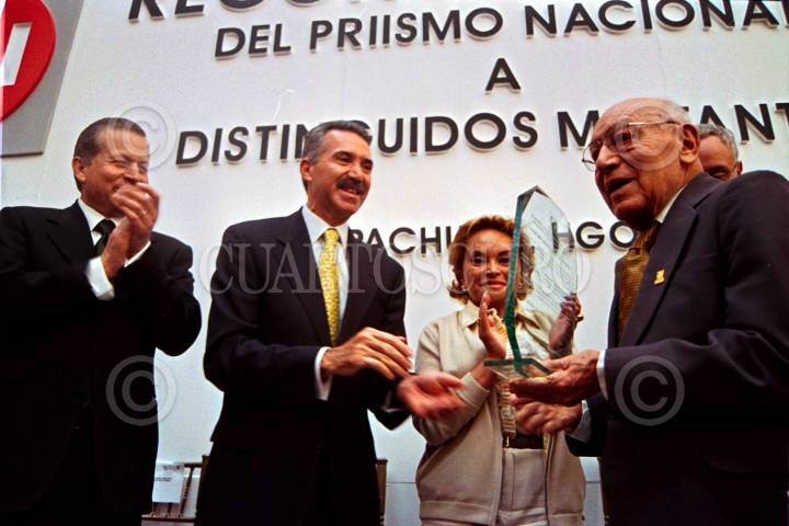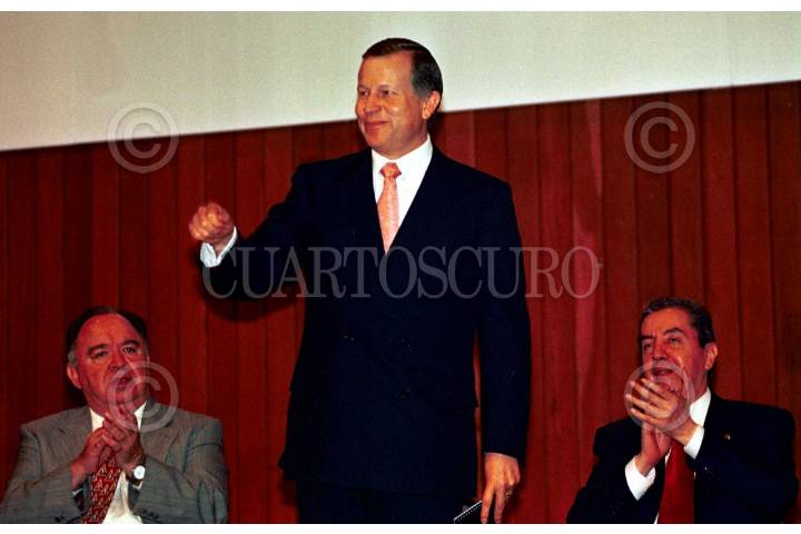 Manuel Angel Nuñez, gobernador de Hidalgo, Humberto Roque Villanueva durante la toma de protesta de la nueva mesa directiva del 2002-2003, an la instalaciones del Partido Revolucionario Institucional. FOTO: Susana Navarrete/CUARTOSCURO.COM