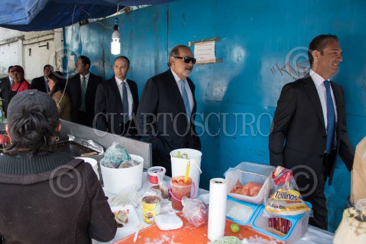 CIUDAD DE MÉXICO, 13FEBRERO2018.- Carlos Slim Helú, empresario y fundador de Grupo Carso y su hijo Carlos Slim Domit, empresario y presidente de Telcel, caminan sobre la calle Presa Falcón de la colonia Polanco, después de la ceremonia de primera piedra de la nueva Embajada de los Estados Unidos en el país, la cual estará localizada en calzada Legaria en la delegación Miguel Hidalgo. FOTO: ADOLFO VLADIMIR /CUARTOSCURO.COM