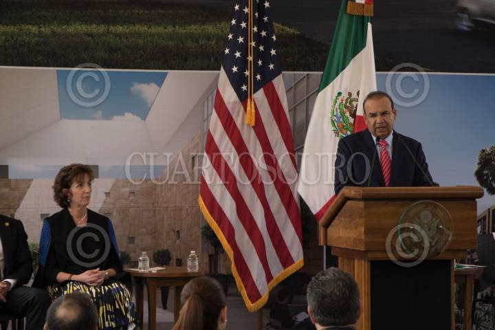 CIUDAD DE MÉXICO, 13FEBRERO2018.- Roberta Jacobson, embajadora de los Estados Unidos en México y Alfonso Navarrete Prida, secretario de Gobernación, durante la ceremonia de primera piedra de la nueva Embajada de los Estados Unidos en el país, la cual estará localizada en calzada Legaria en la delegación Miguel Hidalgo. FOTO: ADOLFO VLADIMIR /CUARTOSCURO.COM
