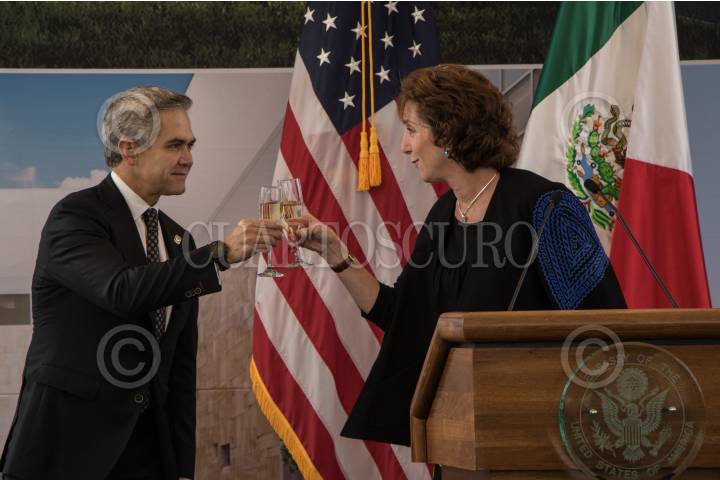 CIUDAD DE MÉXICO, 13FEBRERO2018.- Miguel Ángel Mancera, jefe de gobierno de la Ciudad y Roberta Jacobson, embajadora de los Estados Unidos en México, durante la ceremonia de primera piedra de la nueva Embajada de los Estados Unidos en el país, la cual estará localizada en calzada Legaria en la delegación Miguel Hidalgo. FOTO: ADOLFO VLADIMIR /CUARTOSCURO.COM