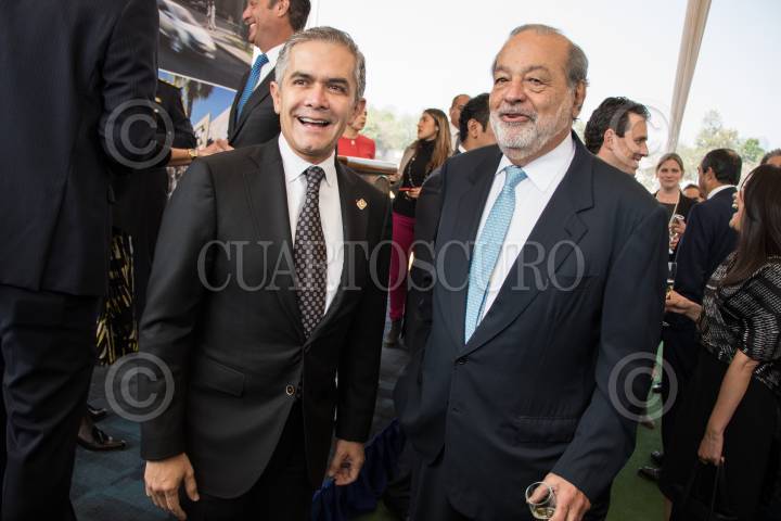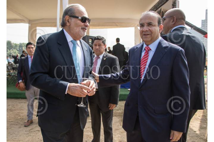 CIUDAD DE MÉXICO, 13FEBRERO2018.- Miguel Ángel Mancera, jefe de gobierno de la Ciudad y Carlos Slim Helú, empresario y fundador de Grupo Carso, durante la ceremonia de primera piedra de la nueva Embajada de los Estados Unidos en el país, la cual estará localizada en calzada Legaria en la delegación Miguel Hidalgo. FOTO: ADOLFO VLADIMIR /CUARTOSCURO.COM