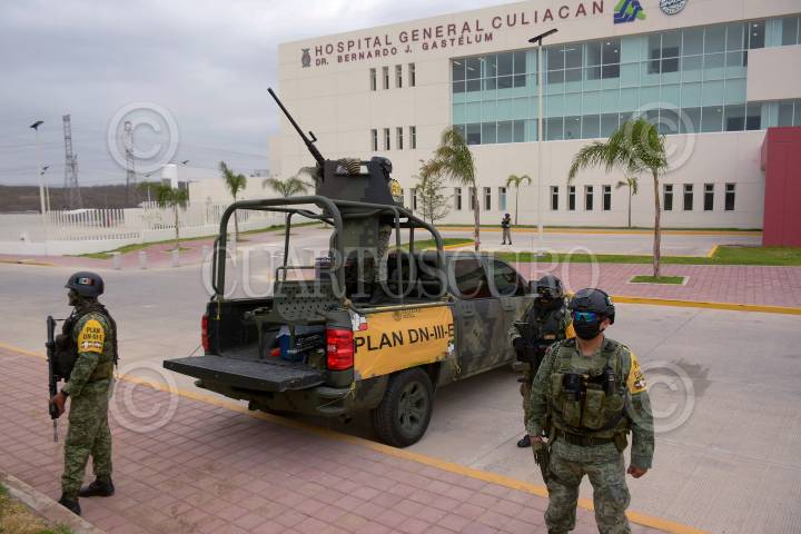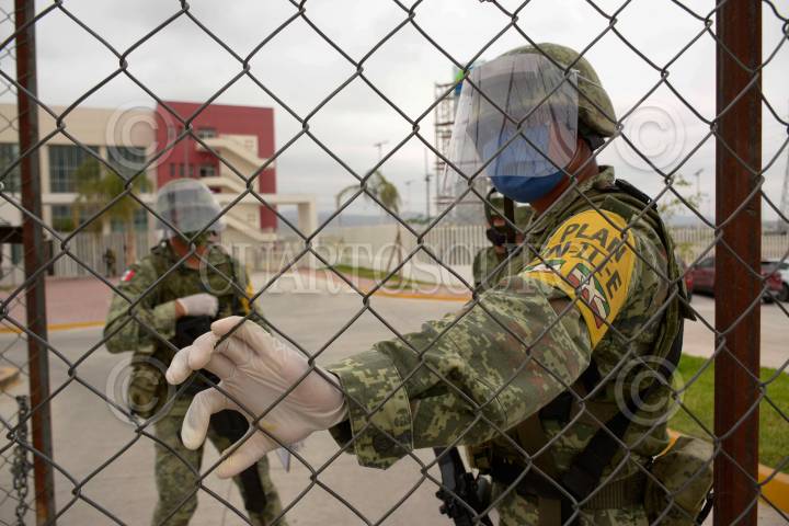 Elementos del Ejército resguardan el nuevo Hospital General de Culiacán que atenderá exclusivamente a pacientes infectados por el coronavirus (Covid-19).