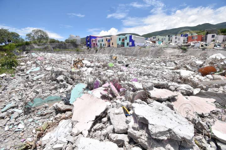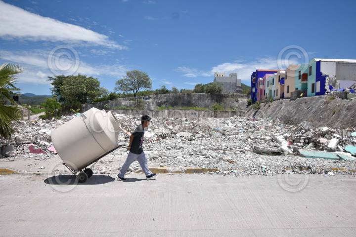 CHILPANCINGO, GUERRERO, 13SEPTIEMBRE2023.- A diez años de perder sus hogares por las lluvias de las tormentas Ingrid y Manuel, habitantes del fraccionamiento de damnificados 'Nuevo Mirador' han perdido de nueva cuenta sus viviendas presuntamente por negligencia gubernamental. La Secretaría del Bienestar anuncio la demolición de 150 viviendas de este lugar para ser reconstruidas por los daños estructurales que presentaban desde su edificación. Esperan que la re reconstrucción de sus hogares, por parte de la Federación, se concluya en el mes de diciembre. FOTO: DASSAEV TÉLLEZ ADAME/CUARTOSCURO.COM