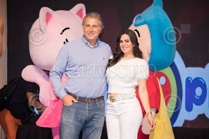 Luz Elena González fungió como madrina del show infantil Plim Plim, el cual se presentará en el Nuevo Teatro Silvia Pinal. En la imagen se aprecia al productor Guillermo Pino.