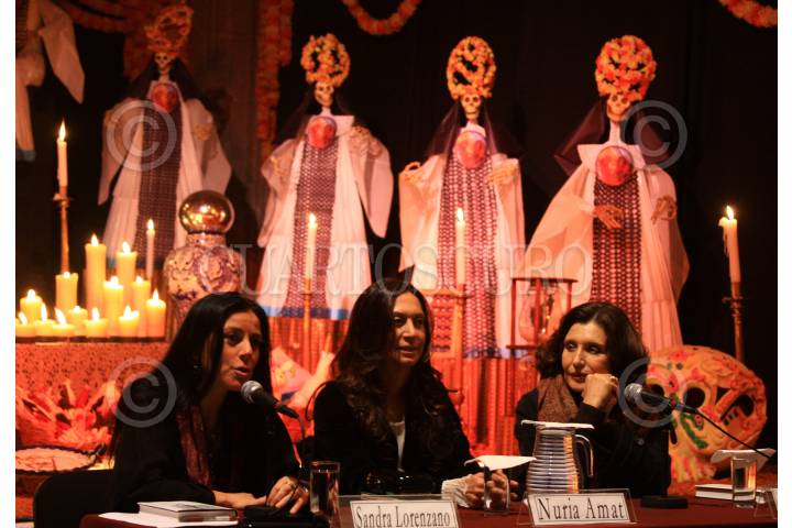 MÉXICO, D.F., 19NOVIEMBRE2008.- Nuria Amat reconocida Escritora Española, en compañía de Sandra Lorenzano y Angeles Manstretta; ambas escritoras, presentaron el libro mas reciente de la escritora primeramente mencionada, titulado "Deja que la Vida Llueva en Mi". Este melodrama literario que involucra en parte la vida de la autora, salio a la luz por primera vez en España hace 5 meses , y ahora se encuentra en los estantes de América latina. La presentación se realizo en la Universidad del Claustro de Sor Juana Ines de la Cruz. FOTO: COSME RADA/CUARTOSCURO.COM