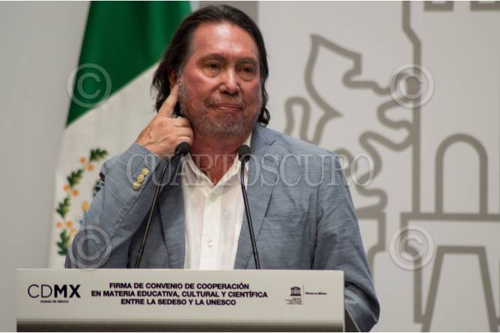CIUDAD DE MÉXICO, 12MAYO2016.- Miguel Ángel Mancera, jefe de gobierno de la Ciudad de México, asistió como testigo de honor a la firma del convenio entre la Secretaría de Desarrollo Social de la Ciudad de México (SEDESO) encabezada por José Ramón Amieva y Nuria Sanz, representante de la Organización de las Naciones Unidas para la Educación, la Ciencia y la Cultura (UNESCO) en México. En el acto el jefe de gobierno entrego un reconocimiento a Armando Ramírez, relator de barrios, por su trabajo en la difusión de tradiciones y costumbres de la capital. La ceremonia tuvo lugar en el Antiguo Palacio del Ayuntamiento. En la imagen Armando Ramírez. FOTO: GALO CAÑAS /CUARTOSCURO.COM