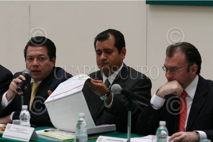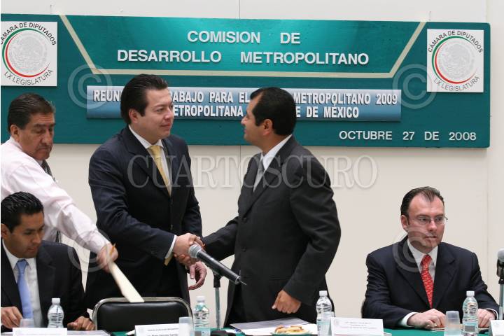 MÉXICO D.F., 27OCTUBRE2008.- Mario Delgado Carrillo, Secretario de Finanzas del D.F. así como Luis Videgaray Caso, Secretario de Finanzas del Estado de México y Nuvia Mayorga Delgado, Secretaria de Finanzas del Estado de Hidalgo, acudieron esta mañana a la Cámara de Diputados donde se reunieron con los diputados integrantes de la Comisión de Desarrollo Metropolitano, de esta cámara. FOTO: GUILLERMO PEREA/CUARTOSCURO.COM