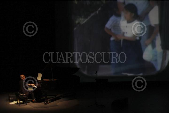 XALAPA, VERACRUZ, 09OCTUBRE2011.- En el cierre del Hay Festival concluyó con el concierto de Michael Nyman, pianista, musicólogo, compositor y critico musical inglés que ha colaborado en diferentes películas del cineasta Peter Greenaway. La cita fue en el Teatro del Estado con una gran concurrencia. FOTO: JAN VÁZQUEZ/CUARTOSCURO.COM