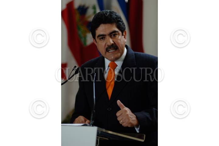 MÉXICO D.F., 18FEBRERO2008.- El presidente de la Organización Demócrata Cristiana de América, Manuel Espino, ofreció una conferencia para rechazar las declaraciones del embajador de Venezuela en México, Roy Chardeton, quien afirmó que el ex dirigente del PAN preparaba una orgía antichavista internacional. FOTO: ISAAC ESQUIVEL/CUARTOSCURO.COM