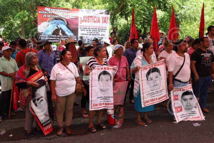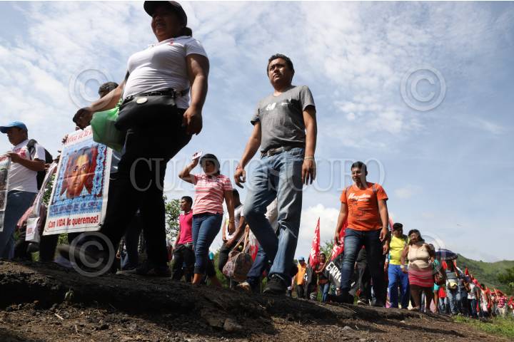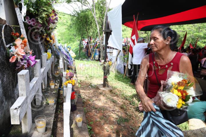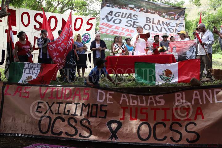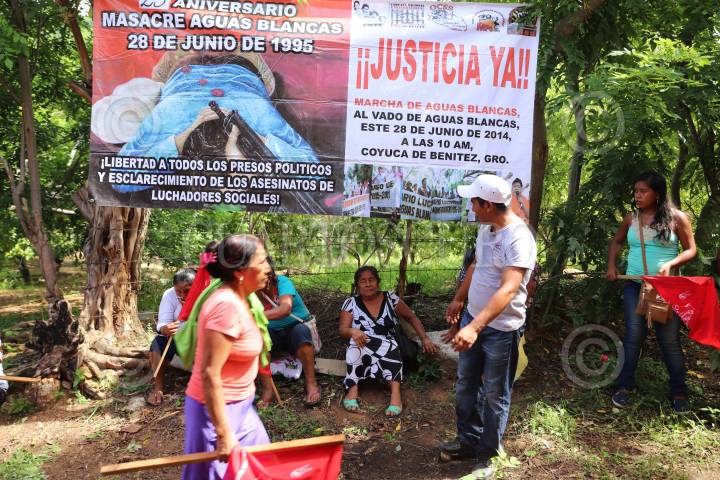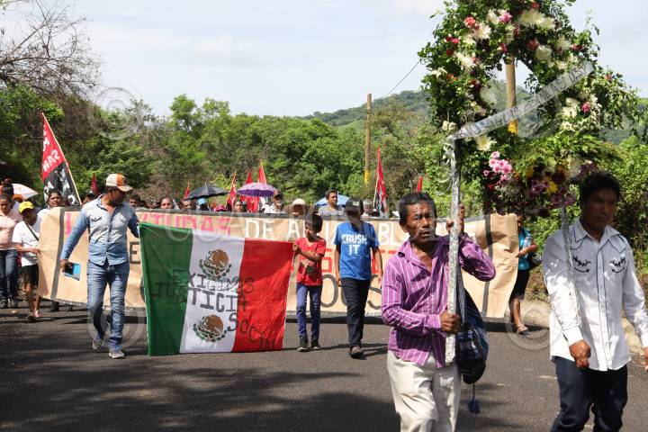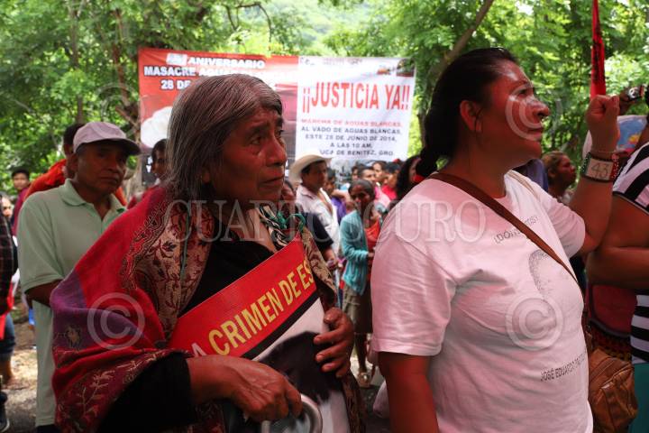 COYUCA DE BENITEZ, GUERRERO 28 JUNIO 2018 .- En el marco del 23 aniversario del asesinato de 17 campesinos en el vado de Aguas Blancas, organizaciones sociales y dirigentes realizaron una marcha de la cabecera municipal hasta el vado de Aguas Blancas en exigencia de justicia contra los autores intelectuales de estos crímenes, el gobernador Rubén Figueroa; y para los 43 normalistas desaparecidos en Iguala, así como también Justicia para los 17 campesinos y esclarecimiento del homicidio de Rocío y Miguel Ángel Mesino Mesino. En este acto también fue recordada la extinta Organización Campesina de la Sierra del Sur (OCSS), de la difunta Rocío Mesino asesinada en Octubre del 2013 y su hermano Miguel Ángel Mesino Mesino, inmolado cinco años antes. “Aquel 28 de Junio de hace 22 años bajaron para exigir la libertad de Gilberto Romero Vázquez y fueron interceptados por más de 500 motorizados”, dijo Carlos Mesino Mesino y la madre de dos jóvenes que fueron asesinados en ese lugar, entre llantos, dio las gracias por seguir en esta lucha y acompañarla a dejar flores y seguirá pidiendo justicia por los hechos violentos. FOTO: BERNANDINO HERNÁNDEZ /CUARTOSCURO.COM