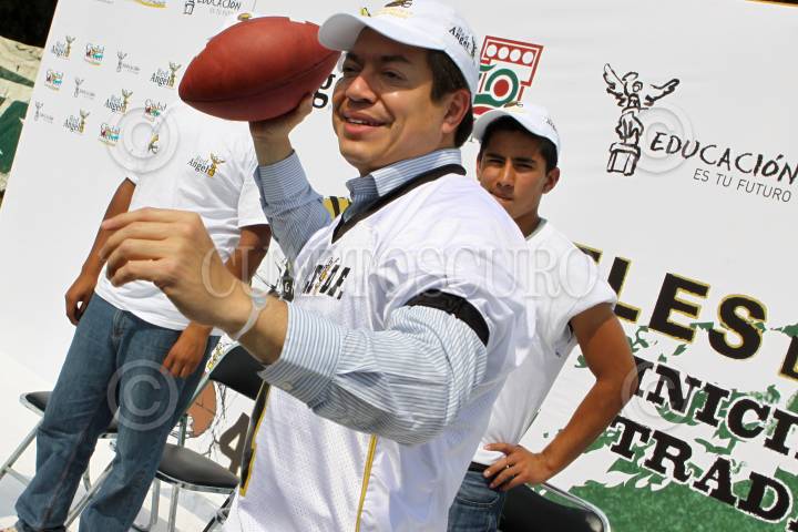 MÉXICO, D.F., 28ENERO2011.- Mario Delgado, secretario de Educación del Distrito Federal durante la presentación del equipo de fútbol americano "Ángeles del D.F." de la categoría juvenil de la ONEFA que se realizo en la Ciudad Deportiva. FOTO: RODOLFO ANGULO/CUARTOSCURO.COM