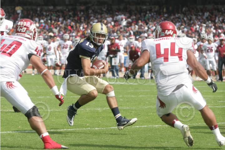 CIUDAD DE MÉXICO, 05NOVIEMBRE2016.- Partido de futbol americano entre Pumas CU y las Águilas Blancas del Instituto Politécnico Nacional, correspondiente a la última jornada de temporada regular de la Organización Nacional Estudiantil de Futbol Americano (ONEFA) en el estadio Olímpico Universitario. El partido culminó con un marcador de 6-10 a favor de equipo visitante. El encuentro se llevó a cabo a puerta cerrada debido a que la UNAM emitió un comunicado en el que especificó que no había las condiciones necesarias para recibir a la afición, así que solamente hubo acceso a las familias de los jugadores. FOTO: DIEGO SIMÓN SÁNCHEZ /CUARTOSCURO.COM