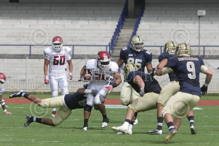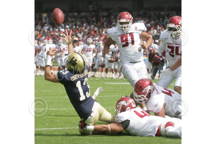 MÉXICO, D.F. 03NOVIEMBRE2012.- Aguilas Blancas visitóa a Pumas C.U. para llevar a cabo la segunda semifinal de la Liga Mayor ONEFA, partido en el que Pumas CU venció 37-3 a las Águilas Blancas. Por lo que los Felinos se disputaran la final frente a los Autenticos Tigres en Monterrey. FOTO: JUAN PABLO ZAMORA /CUARTOSCURO.COM