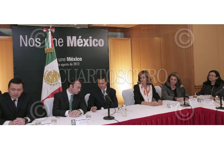 MÉXICO, D.F. 22AGOSTO2012.- Enrique Peña Nieto, virtual candidato ganador de los comicios presidenciales, acompañado de Luis Videgaray, Miguel Ángel Osorio Chong, María Elena Morera, Paola Migoya y Consuelo Castro, durante la reunión que sostuvieron con integrantes de Organizaciones No Gubernamentales. FOTO: CUARTOSCURO.COM