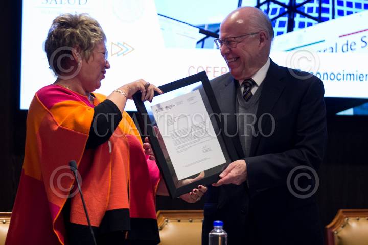 CIUDAD DE MÉXICO, 16ENERO2018.- Gerry Eijkemans, representante de la Organización Panamericana de la Salud (OPS) y de la Organización Mundial de la Salud (OMS) en México, y José Narro Robles, secretario de Salud, durante la ceremonia de certificación de COFEPRIS como miembro del Esquema de Cooperación de Inspección Farmacéutica (PIC/S) y recertificación como Autoridad Reguladora Nacional de Medicamentos con Nivel IV ante la OPS. FOTO: GALO CAÑAS /CUARTOSCURO.COM