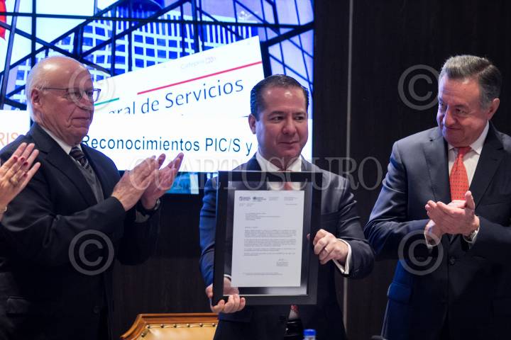 CIUDAD DE MÉXICO, 16ENERO2018.- José Narro Robles, secretario de Salud; Julio Sánchez y Tépoz, comisionado federal de la Comisión Federal de Protección contra Riesgos Sanitarios (Cofepris), y Guillermo Funes Rodríguez, presidente de la Cámara Nacional de la Industria Farmacéutica (CANIFARMA), durante la ceremonia de certificación de COFEPRIS como miembro del Esquema de Cooperación de Inspección Farmacéutica (PIC/S) y recertificación como Autoridad Reguladora Nacional de Medicamentos con Nivel IV ante la OPS. FOTO: GALO CAÑAS /CUARTOSCURO.COM